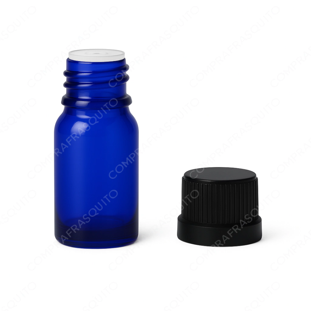 El Frasco Colirio de Vidrio Azul de 10 ml con Inserto y Tapa Negra es un envase diseñado para el almacenamiento y dosificación necesaria de soluciones líquidas, como colirios, aceites esenciales y otros productos que requieren una aplicación controlada. Fabricado en vidrio azul de alta calidad , este frasco ofrece una estética atractiva y proporciona protección contra la luz, preservando la integridad de los productos sensibles a la exposición lumínica.
