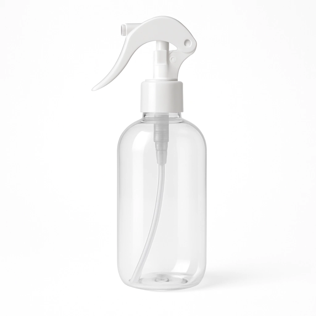 Botella de plástico PET de alta calidad, capacidad 250 ml, equipada con válvula gatillo tipo spray de excelente alcance y difusión. Su diseño moderno, liviano y resistente la convierte en una opción ideal para múltiples usos tanto domésticos como profesionales.