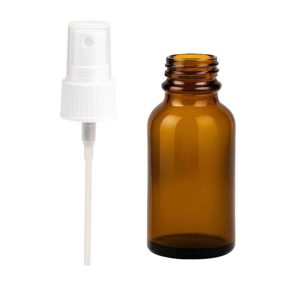 Modelo: Frasco Colirio Euro Ámbar 15 ml con Spray Blanco