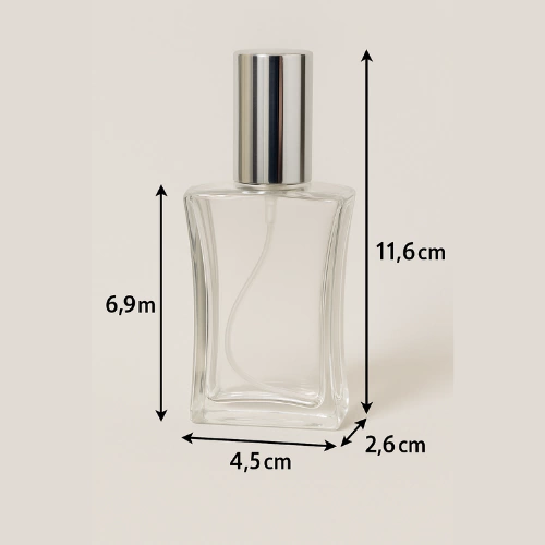 Modelo: Frascos Perfumero Recargable de Vidrio 30ml con Spray Y Capuchón Funda de Aluminio Color Plata